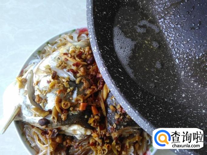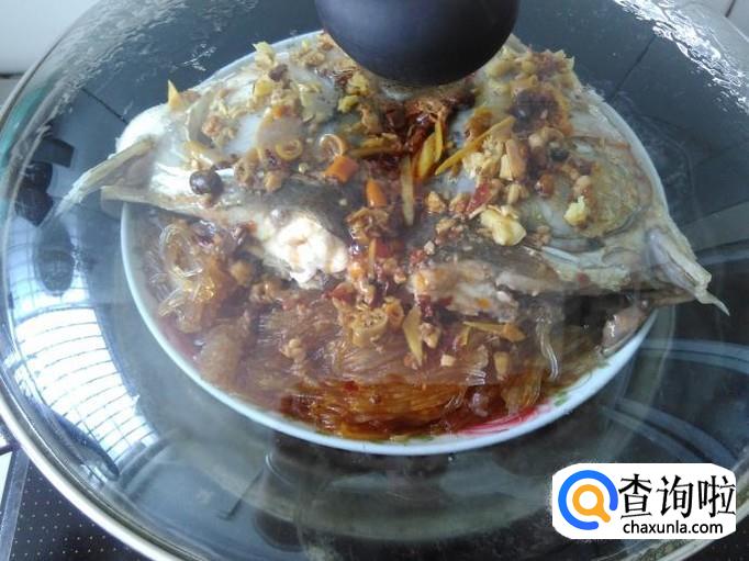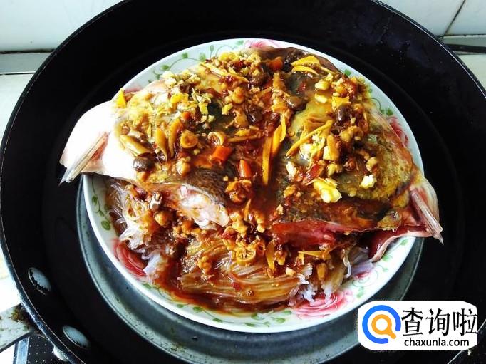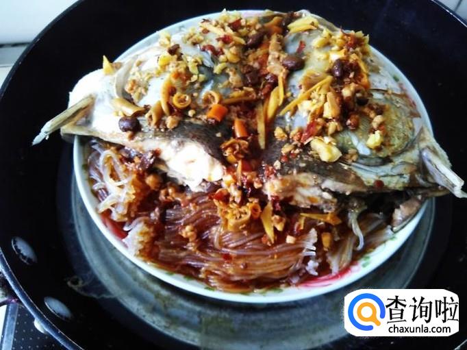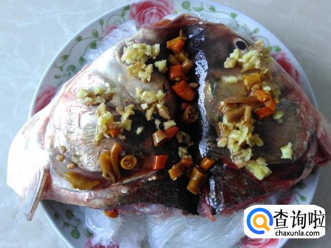 把鱼头清理干净,劈成两边,粉丝准备好。