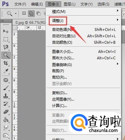 选择人物的衣服之后我们在图像菜单里找到调整选项,如图所示: