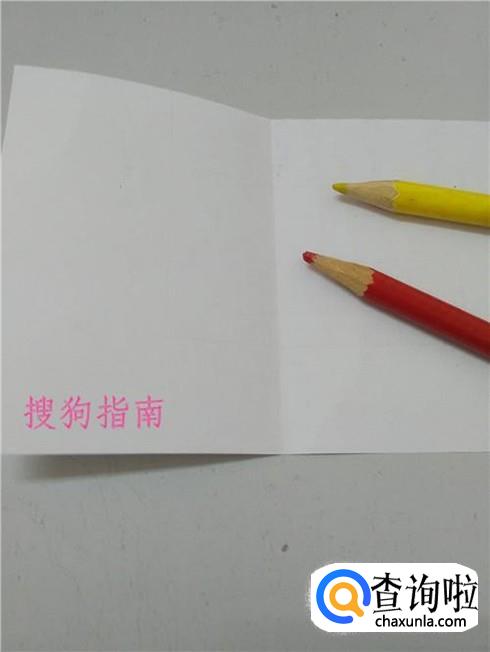 准备一张长方形的纸和两支彩笔,并将长方形的纸对折一下。