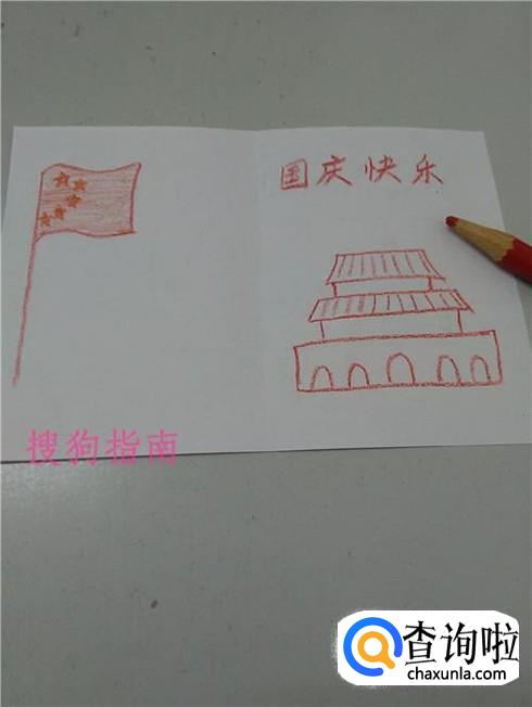 最后用笔在天安门上方写上国庆快乐几个字,国庆节的贺卡就做完了。