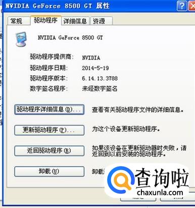 然后在显卡属性里点一下“返回驱动程序”,会弹出一个询问对话框,点“是”,就会退回到原来的显卡驱动了。