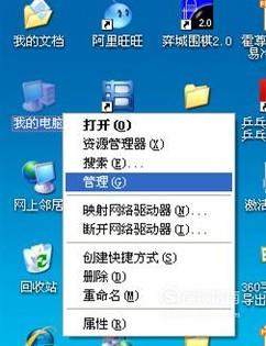 我们在桌面的“我的电脑”上右键单击,在弹出的菜单里点“管理”。