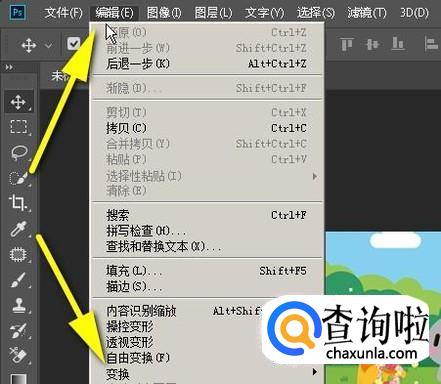 鼠标移到菜单栏这里,点“编辑”,在弹出的菜单中再点“变换”。