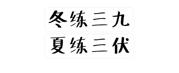 "冬练三九,夏练三伏" 出自《燕王剑侠》,是一个谚语,描述勤奋努力的人在一年中最冷最热的时候仍然在锻炼。不少喜欢运动的人将其奉为圭臬,但是需注意在冬季防寒保暖在夏季防止中暑。