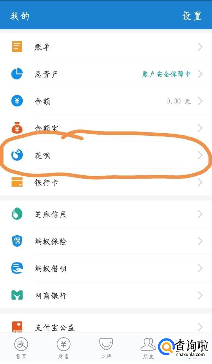 然后找到“花呗”功能,点击进入。