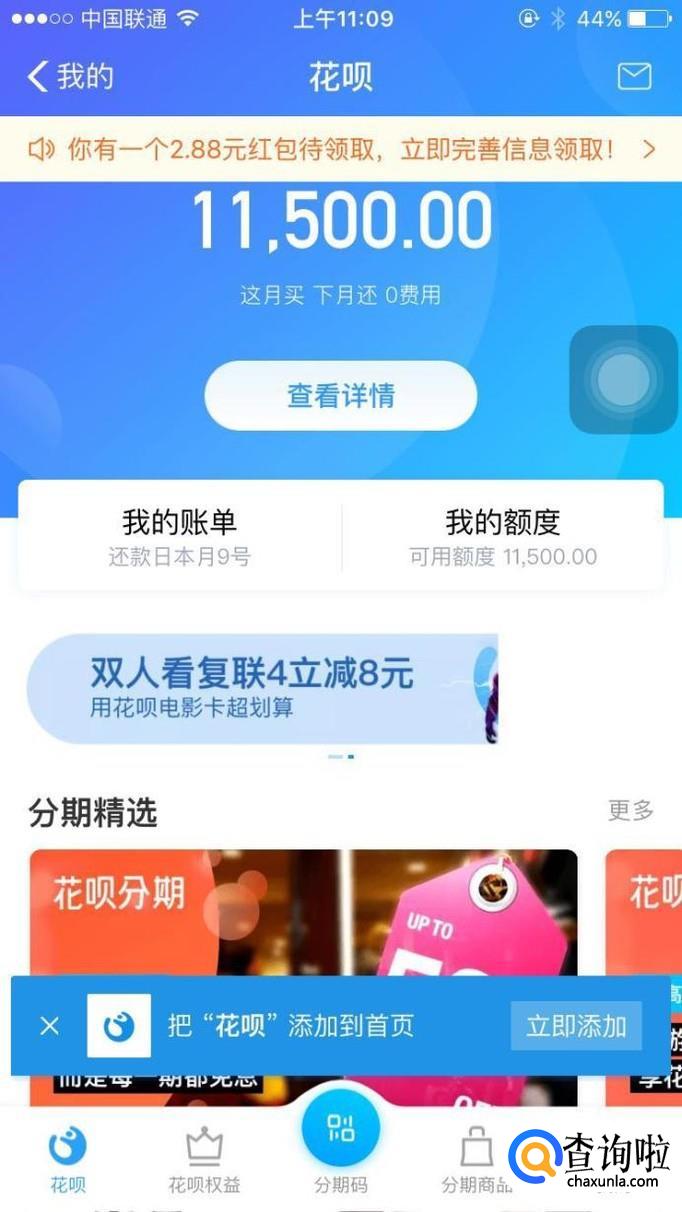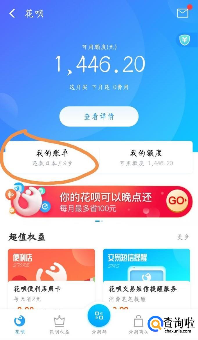 在花呗界面点击“我的账单”,进入账单页面。