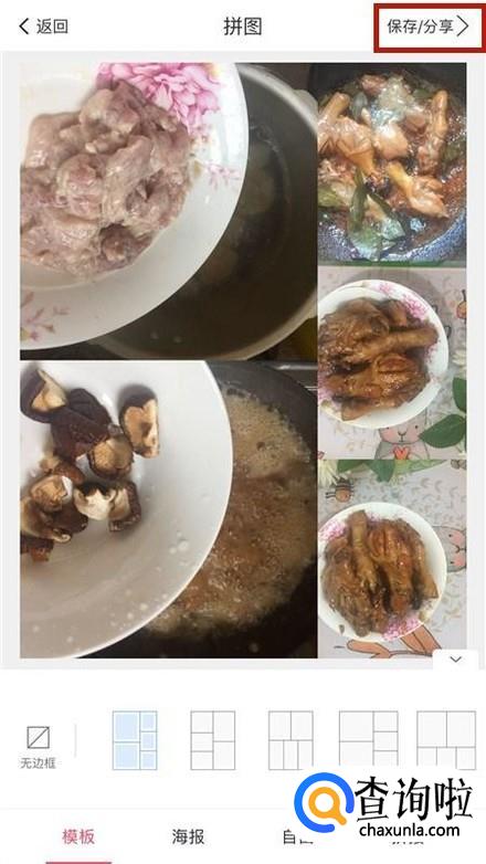 拼图完成,点击屏幕右上方的保存/分享,如下图所示。