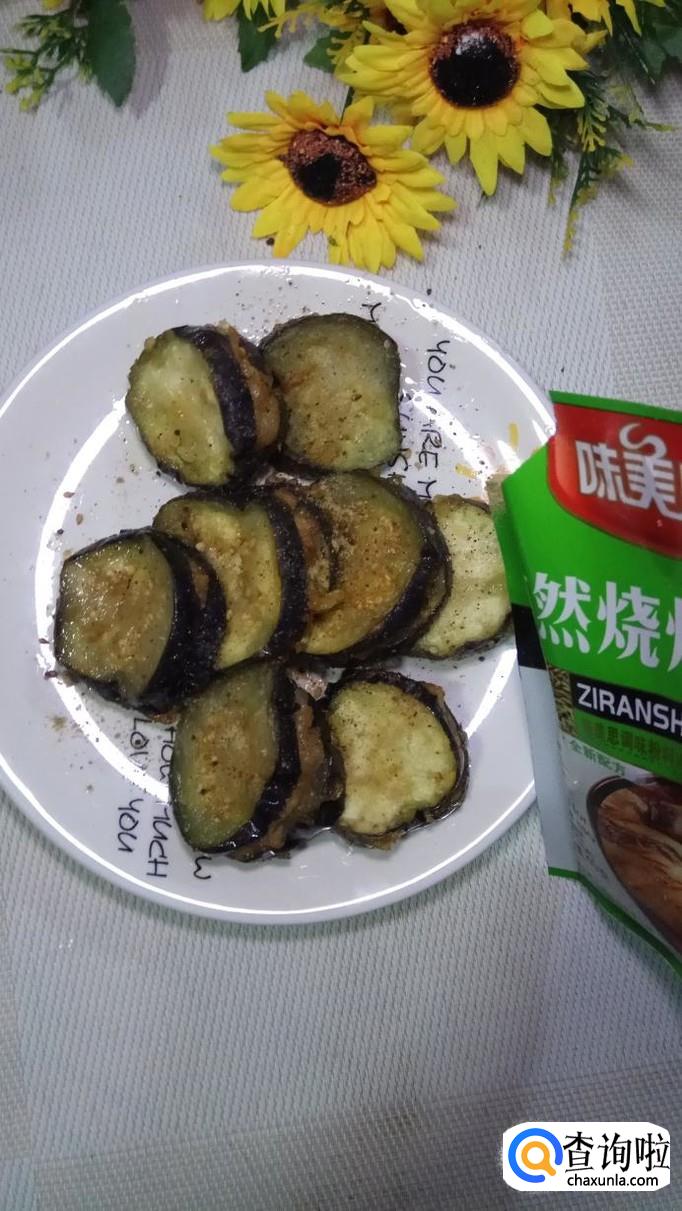 茄子适量,盐适量,姜适量,面粉适量,淀粉适量,五花肉适量,鸡精适量,五香粉适量,料酒适量,椒盐适量,孜然烧烤料适量,小葱适量。