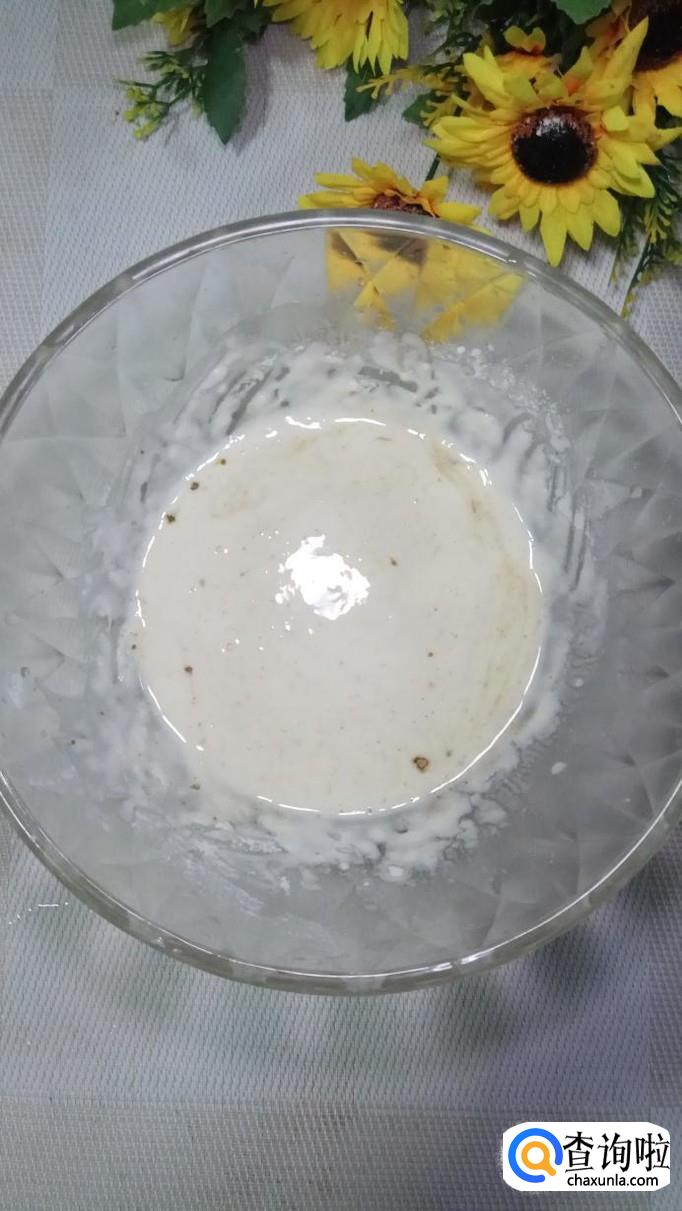 将做好的茄盒放入面糊中,均匀的沾上一层面糊,可以稍微稠一些,比酸奶再稠一些。
