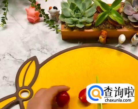 圣女果对半切开,牛油果切块。