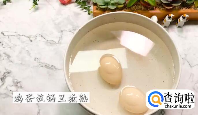 鸡蛋放锅里煮熟。