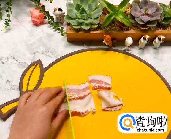 鸡蛋、洋葱切块,培根切片。