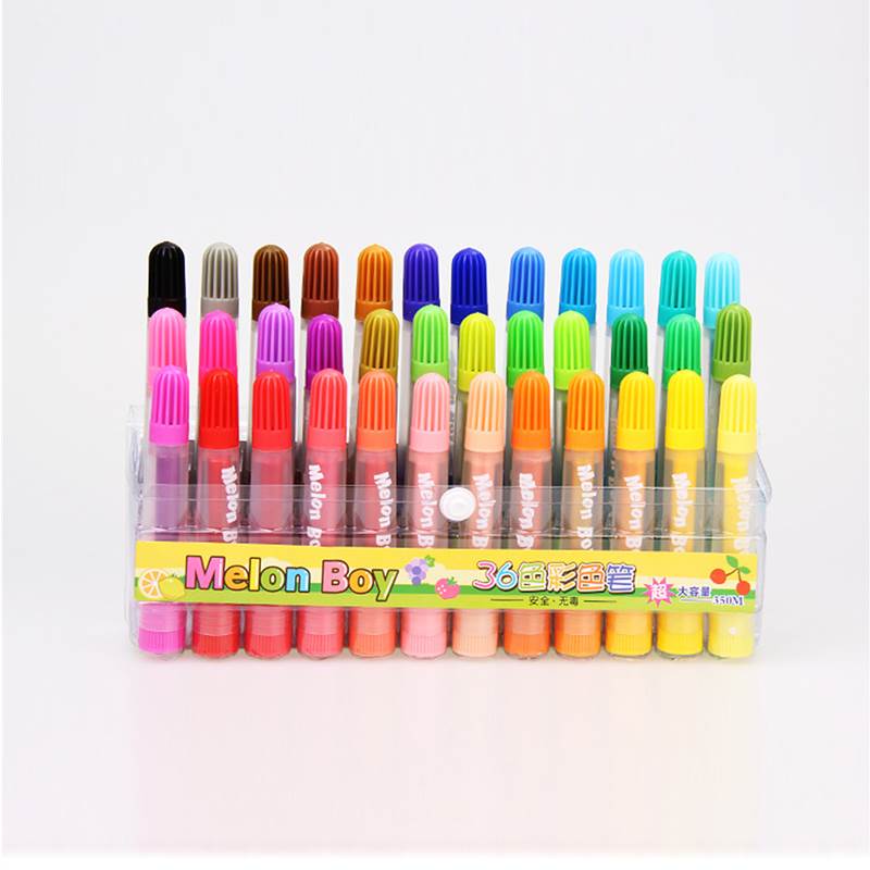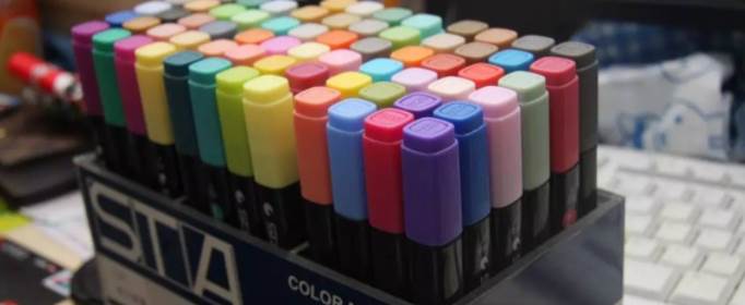 马克笔分为油性马克笔和水性马克笔两种。油性马克笔多用于一次性的快速绘图,干的很快,耐水、耐干。虽然不能溶于水,但是能溶于酒精,如果笔干掉了,在笔芯里加入点酒精又可以接着用一段时间。水性马克笔色彩明亮,能够溶于水,干了往笔芯内加点水也还能接着用一段时间。水彩笔有单色水彩笔、双色水彩笔和多色水彩笔。单色水彩笔只有颜色的区别,有12色、24色、36色等色号。双色水彩笔书写起来有2种颜色。多色水彩笔是由多种颜色的笔芯合在一起做成一个笔头,常用于美工作画。