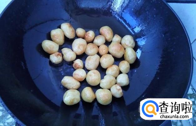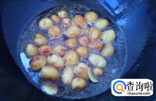 锅内倒入油,油温6成热时放入小土豆炒制。