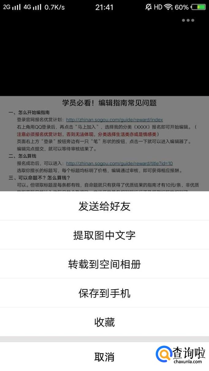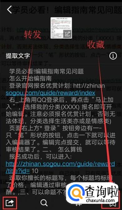 提取完成之后,可以将文字进行收藏,也可以将文字进行转发,如图所示。