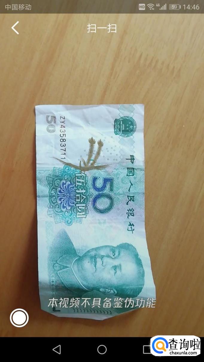 进入扫描后,可以看到50元人民币上方也出现了一只凤凰