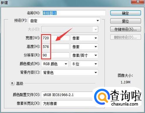 打开ps之后再按下Ctrl+N键在弹出的对话框内设置参数如图所示: