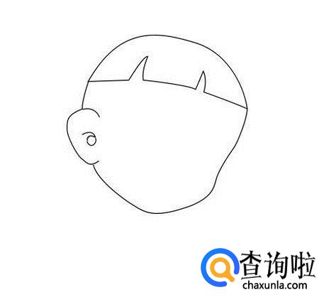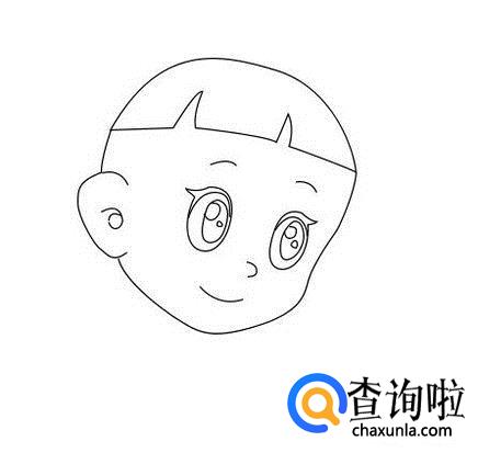 再在面部上画出大头儿子的眉毛眼睛,鼻子和嘴巴,如图所示: