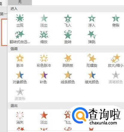 然后将动画窗格拉出,接着选择一种动画效果,直接进行选择即可,有很多中,进入、退出或者其他类型的动画,都是可以点击插入的。