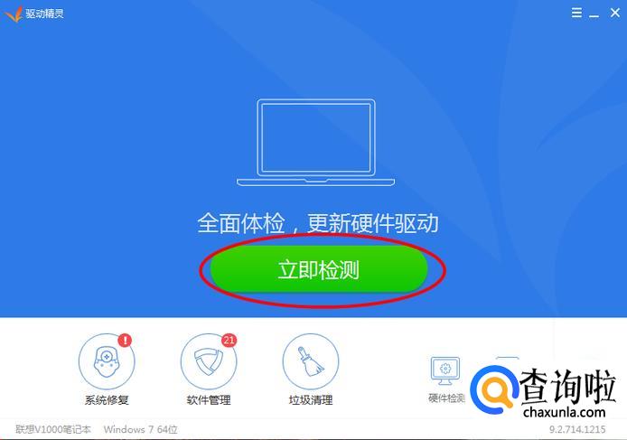 打开我们的驱动精灵,点击立即检测。