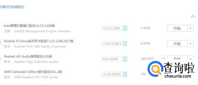 找到显卡的驱动,点击后面的升级。
