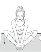 做拉筋动作时,可以在床上做,也可以在瑜伽垫上面做,这个任你自己选择。第一个动作,坐在平面上,挺直腰杆,双脚靠在一起,两腿弯曲两膝朝外,双腿尽量贴向地面,双手握住脚背让脚底朝上。每次坚持二十秒,每天做五次。