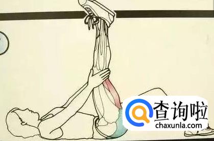 第四个动作,身体平躺于平面上,抬头挺胸,慢慢抬起左脚,用双手保住左脚腿部,并往上提,左腿尽量伸直,右手放在腰间即可。一次坚持二十秒,做完换另一边做,左右两边做完算一组,每天做五组。