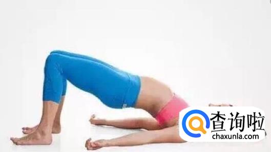 第七个动作,平直躺在平面上,膝盖弯曲,脚掌立于平面上,腰部抬起,双臂伸直,手掌心向下,吸气时腰部向上坚持十秒,呼气时腰部向下坚持十秒,上下完成一次算一组,一天做五组。