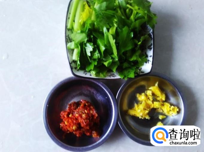 腊菜、香芹、姜蓉、辣椒酱准备好。