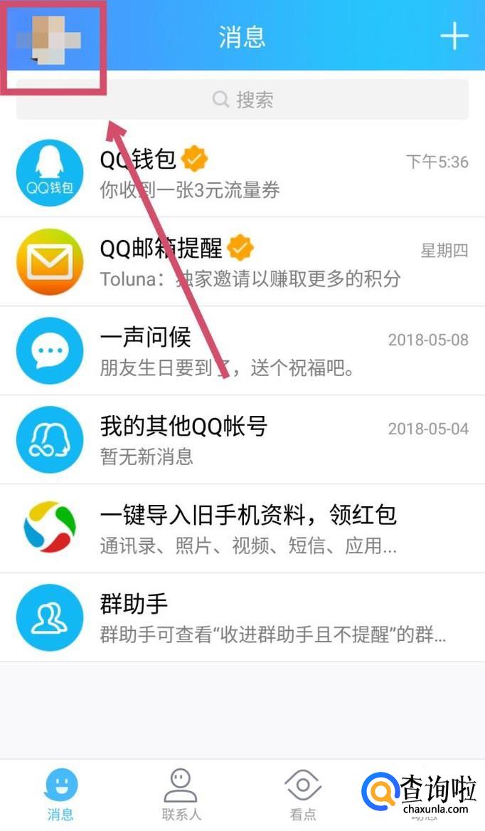 打开QQ,在页面左上角找到自己的头像,点击进入。