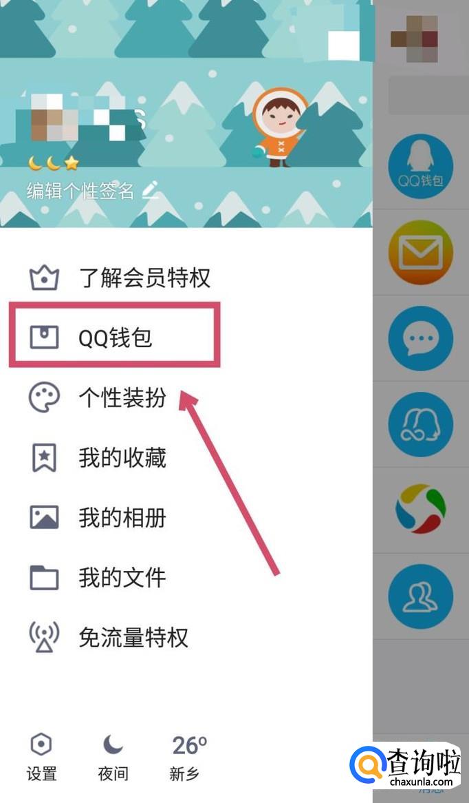 然后在左侧弹出的页面中找到“QQ钱包”,点击进入。
