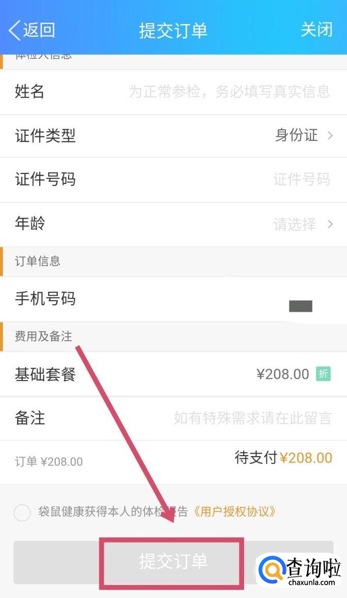 绑定成功后,输入相应的基本信息,点击“提交订单”即可。