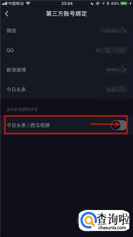 然后点击开启今日头条/西瓜视频开关,如下图所示。