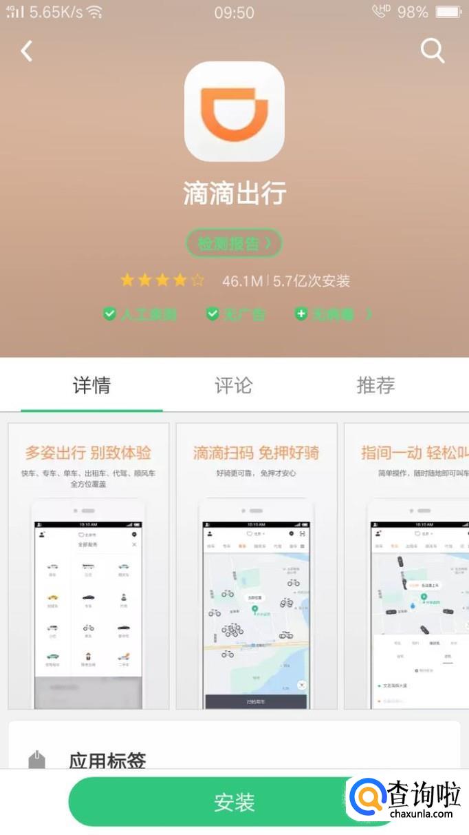 打开手机软件商店,搜索“滴滴出行”,点击安装。