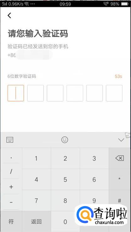 输入收到的验证码。