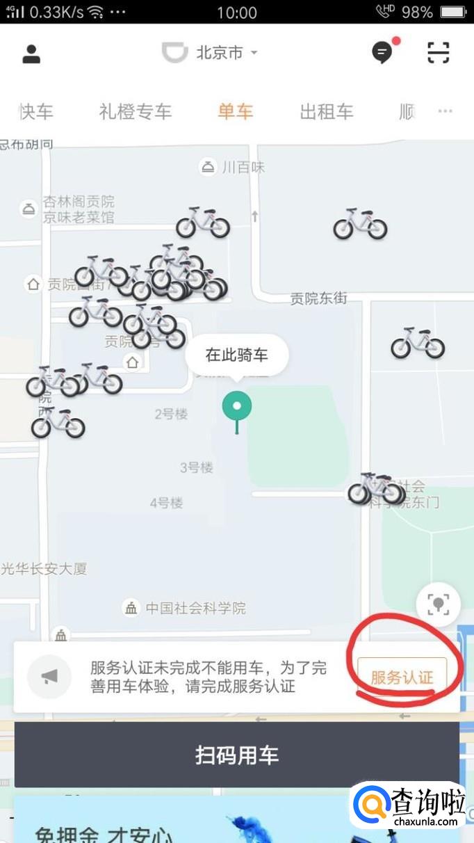 完成认证后点击扫码骑车即可。
