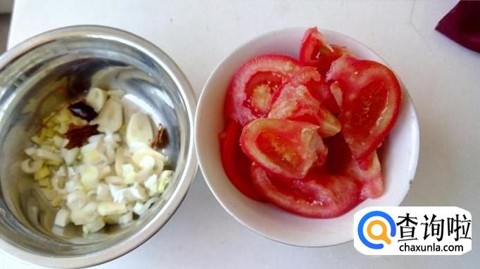 把准备好的葱、姜、蒜、辣椒洗净,葱、姜切末,蒜瓣切片,把准备好的西红柿洗净切好。