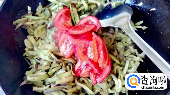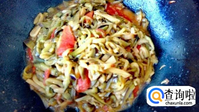 翻炒一会后,倒入准备好的西红柿,继续翻炒,炒到西红柿变软就可。