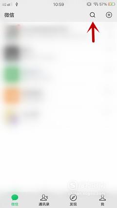 进入微信首页后,点击顶部的“搜索按钮”