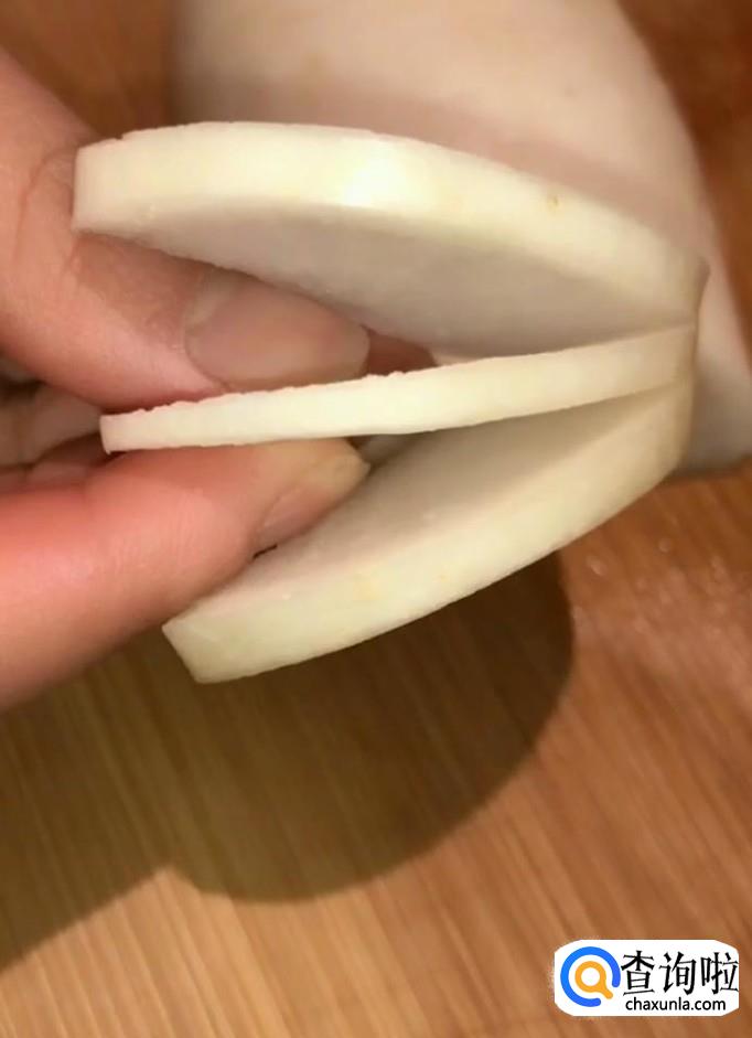首先我们将白萝卜清洗干净,对半切开,改刀切一下如图所示