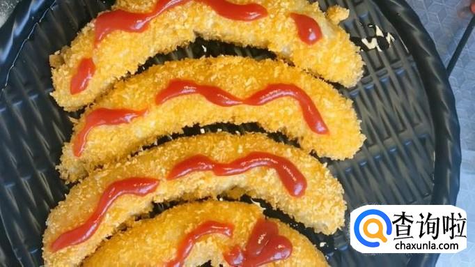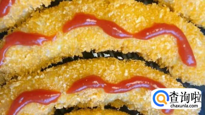 最后,将香蕉摆盘,把准备好的番茄酱涂抹在香蕉上,这道小吃就完成了!