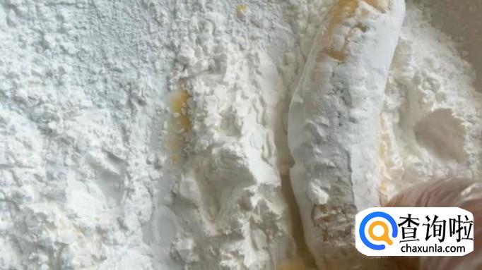 将沾好蛋液的香蕉放入淀粉中,使香蕉表面均匀的覆上一层淀粉。
