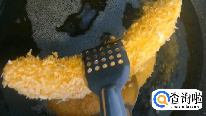 在锅中加入植物油烧热,油温七成热时,将裹好酥皮的香蕉放入油锅中炸制。
