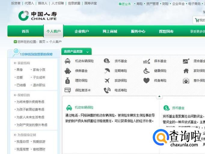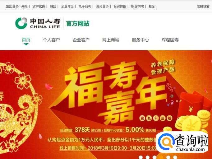登录所买保险的保险公司的网址,以中国人寿保险为例,登录中国人寿保险官网,如图所示。