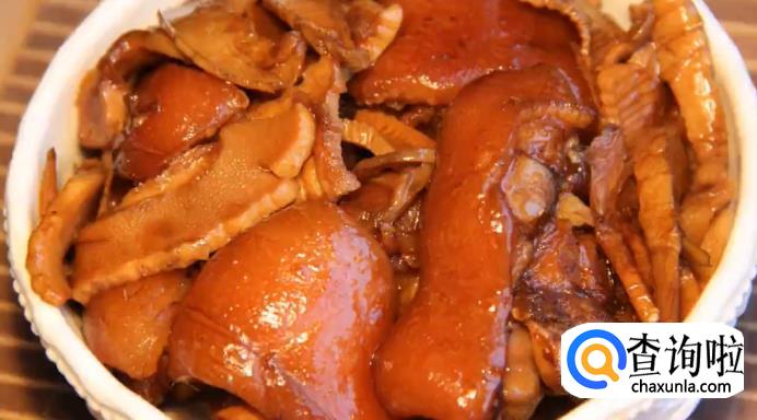 收汁完以后,将其出锅盛盘,冬笋焖猪脚就完成了。