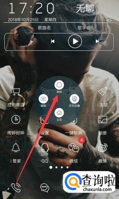 打开一个快捷菜单之后,点击“录制”,如图所示。