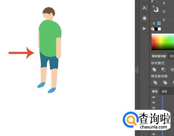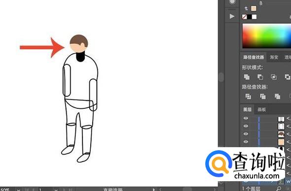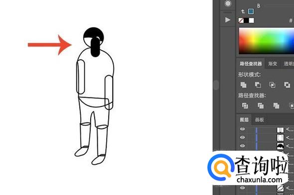 利用规范形状+钢笔的方式绘制好大体的人物造型,先不用去调整图层顺序。