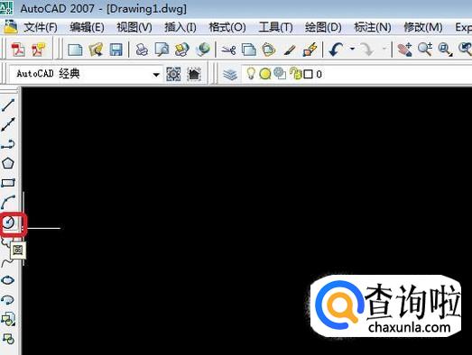 首先,打开CAD,我们先画一个圆,如图所示,点击左侧工具栏中的“圆”命令按钮。