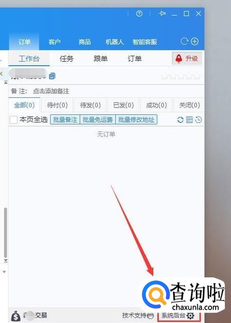 打开并登陆天猫帐号,登陆成功后点击右下角的一个“系统后台”按钮,点击它进入系统页面中。
