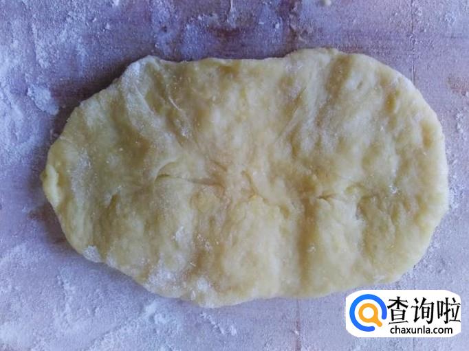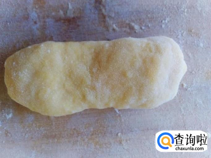 再压成长薄饼状,然后卷起来。